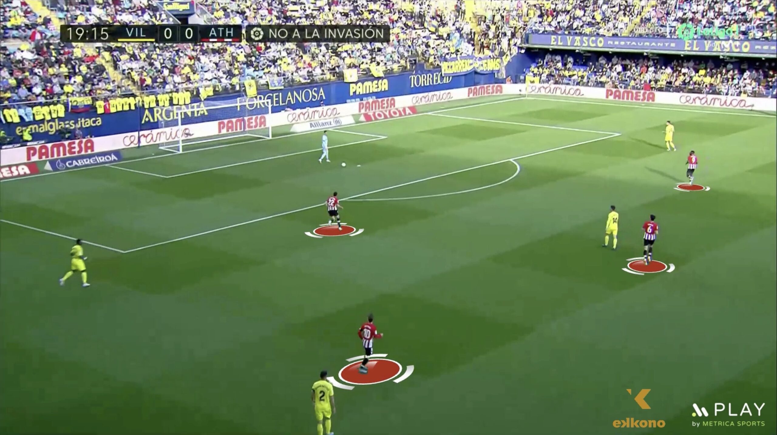 アスレティック・ビルバオはビジャレアルCFに対するハイプレスで2-3-1構造を使用します(右のウィンガーは見えません)。