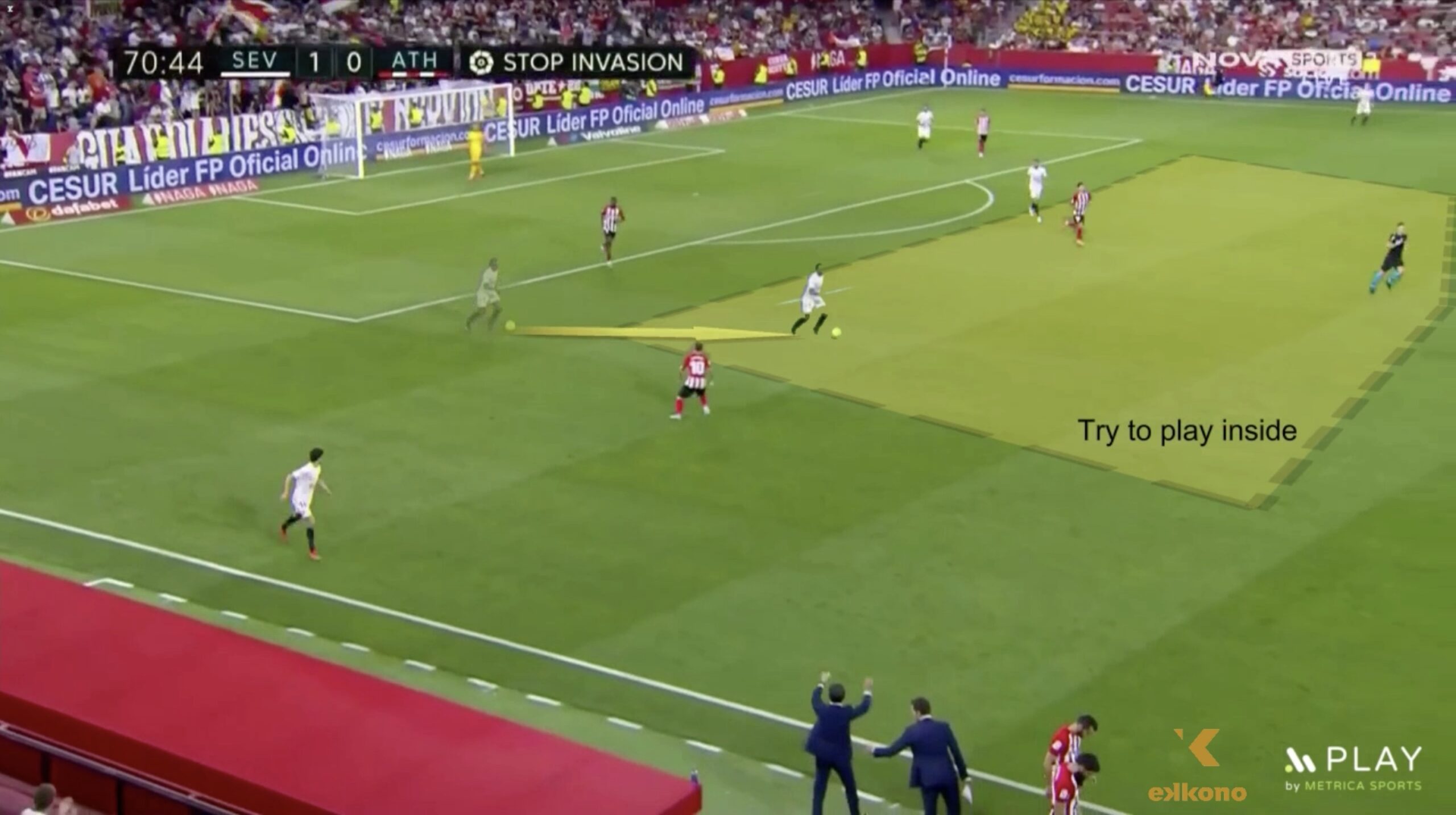 このアクションでは、セビージャに対しても同じ2-3-1構造をアスレティック・ビルバオが使用しているのがわかります。