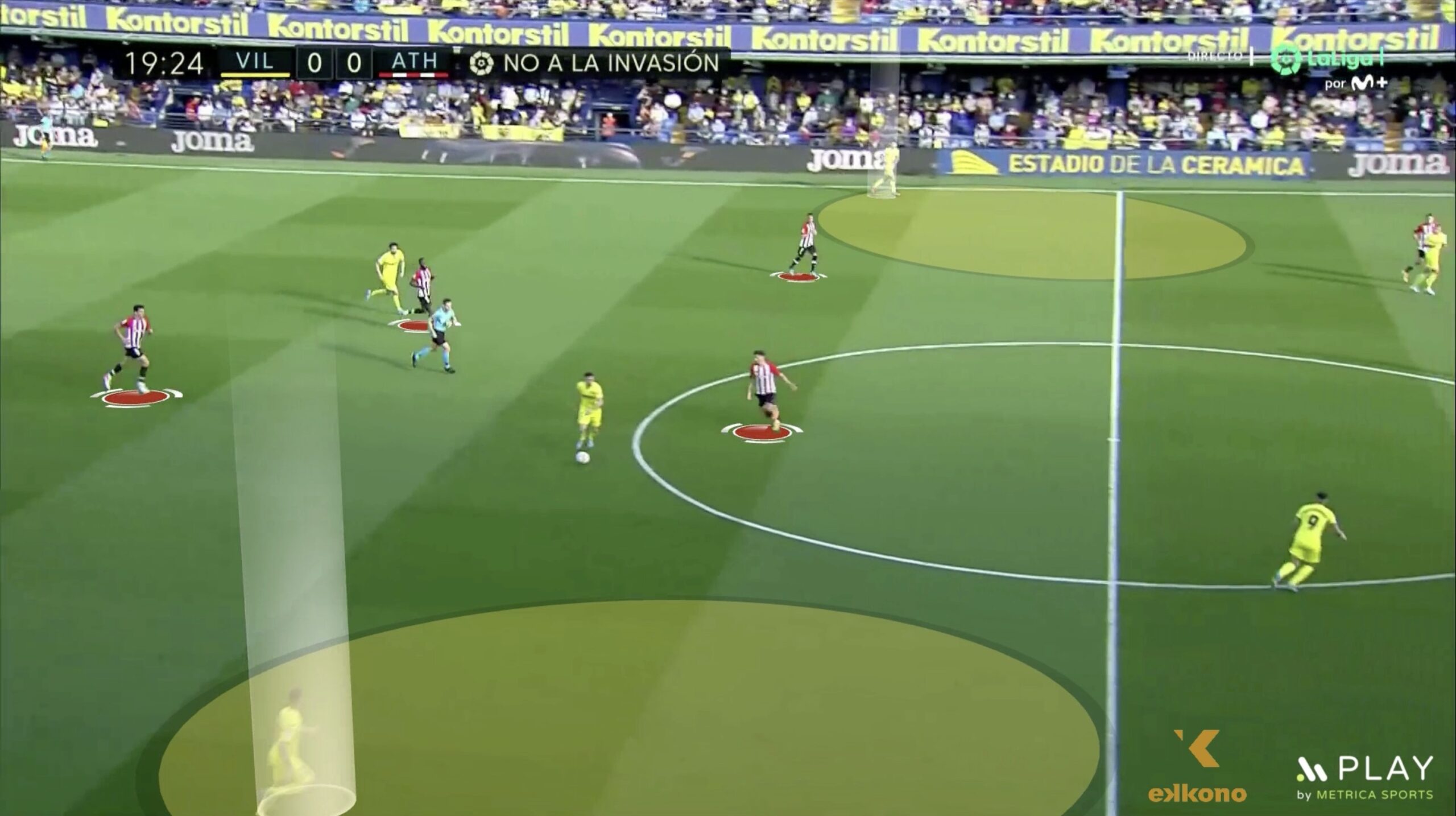 このアクションでは、ビジャレアルのGKが数的優位のある2対1のフリーギャップにプレイします。