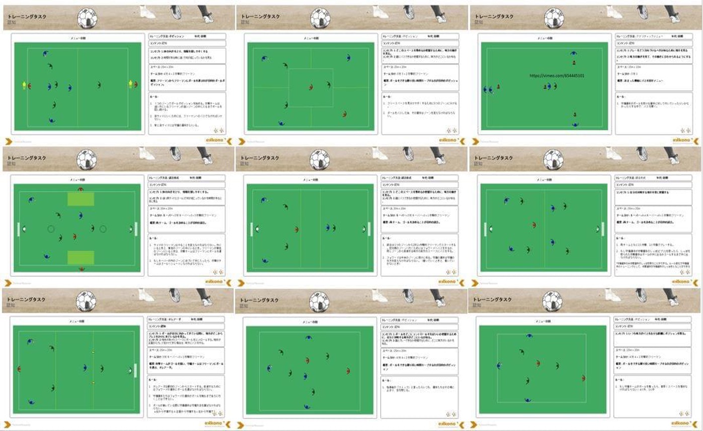 - 初期や成長期(U9-U16)のチームのための、難易度の違うメニューを提示します